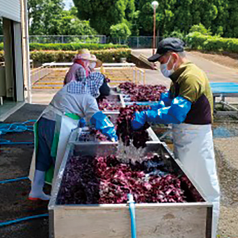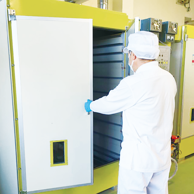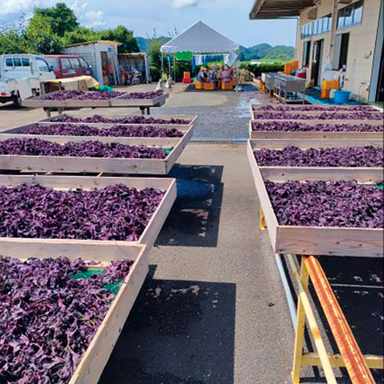 梅の実の塩漬け作業 赤紫蘇の水洗作業 赤紫蘇の天日干し 桑葉の捥ぎ作業 桑葉天日干し作業 自社乾燥機 初夏から晩夏 5月下旬〜8月上旬 天日干しした梅の実は、いそ塩と樽に漬け込みます。その頃、赤紫蘇も収穫。 赤紫蘇も手摘みし、丁寧に水洗いし天日干し。 赤紫蘇の水気が無くなったら、さらに乾燥機で完全に乾燥させ、粉砕機へ。 夏になると、黄緑色に輝く桑の収穫。桑葉も丁寧に手洗いし天日干し。 さらに自社乾燥機で時間をかけ乾燥。 その後、自社粉砕機へ。