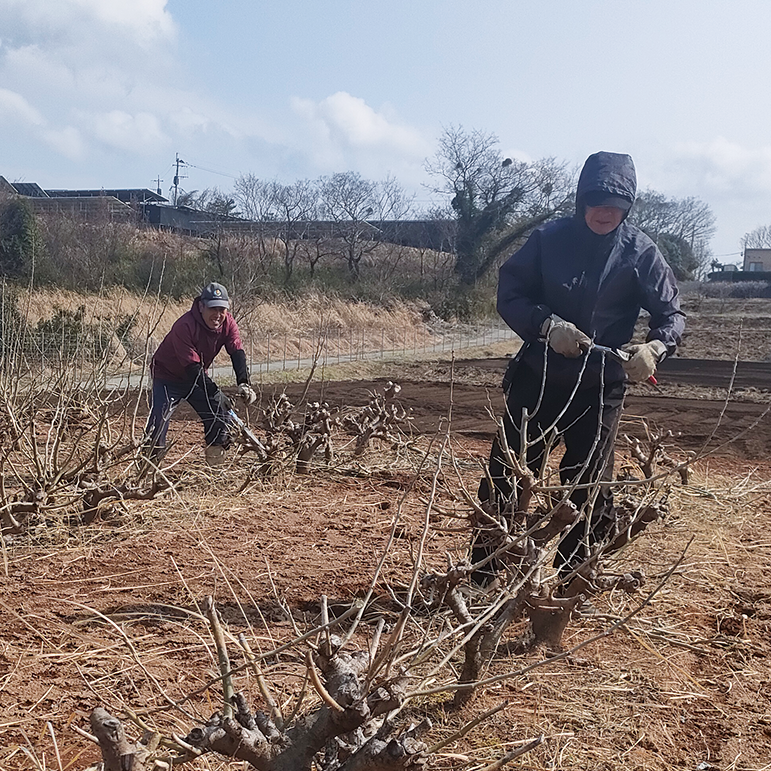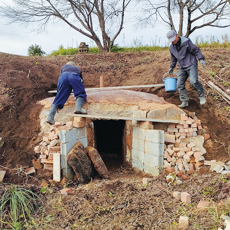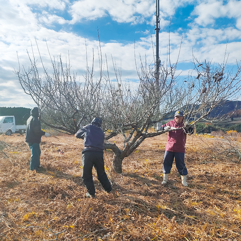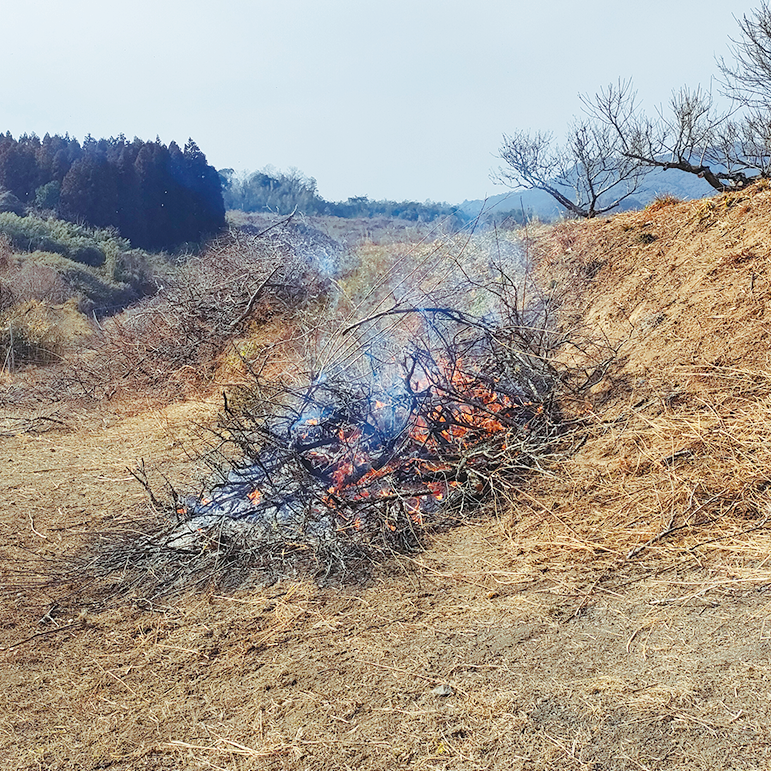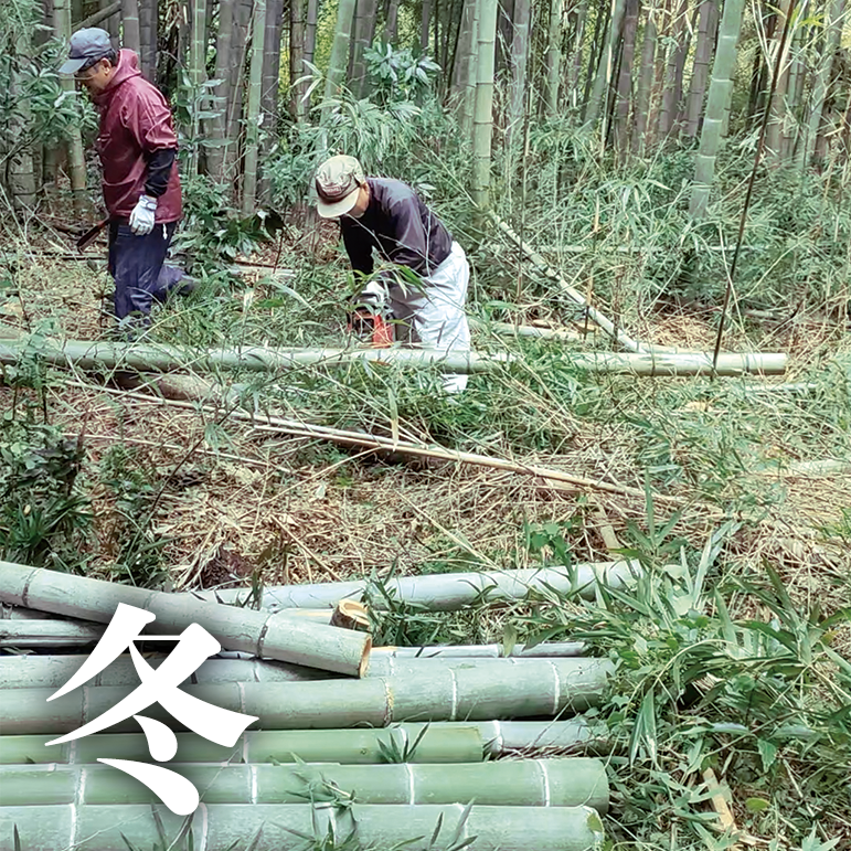 裏山での孟宗竹の伐採 昔ながらの窯作り 梅の木のカイガラムシ駆除 梅の木の伐採材焼却作業 桑穂木剪定作業 畑の環境づくり 初冬から晩冬 11月半ば〜2月上旬 裏山から、3年ほど成長した孟宗竹を伐採し、昔ながらの窯で竹炭作り。 出来上がった竹炭を水に浸すことでミネラルが豊富な水を作り、その水で作物を洗います。 春が来る前までに梅の木のカイガラムシの駆除や梅の木の伐採材焼却作業を行います。 桑も穂木剪定を丁寧に手作業で行います。 冬場の作業でも、今年の梅の実と桑葉の質が大きく変わってきます。